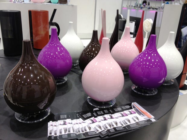 Broksonic offered these sleek, colorful humidifiers, which also had options for aromatherapy. At their base, they're still humidifiers like you'd see sitting on the shelves of a big box store, but much prettier to look at.