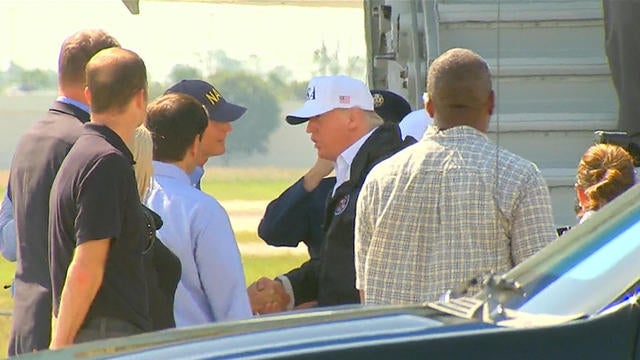 The president was joined by First Lady Melania Trump as they arrived in the Fort Myers area, where he thanked first responders and members of the U.S. Coast Guard for their efforts after receiving a short briefing by FEMA officials. Vice President Mike Pence and a White House delegation of cabinet officials also joined the president on the majority of the trip.