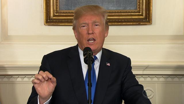 The president, from the White House's Diplomatic Reception Room, announced the U.S. will remain in the Joint Comprehensive Plan of Action (JCPOA) reached under Obama in 2015, but he will not certify to Congress that Iran is in compliance under the Iran Nuclear Agreement Review Act (INARA) of 2015. Instead, he's looking to Congress to revise the INARA, and to ally nations in the JCPOA to come up with a new set of restrictions on Iran to coincide with the JCPOA. The president accused Iran of not living up to the "spirit" of the original deal.