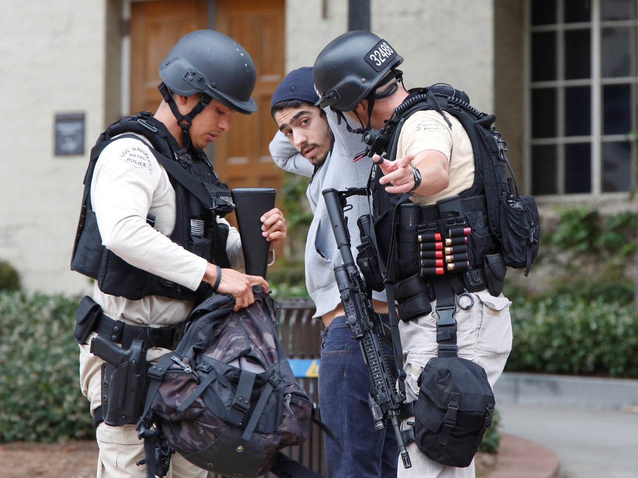 SWAT officers cleared occupants one by one at the mathematical sciences building. One man walked out with his hands up and was told to get on his knees. An armed officer searched him and his backpack, then sent him on his way with his hands still in the air.