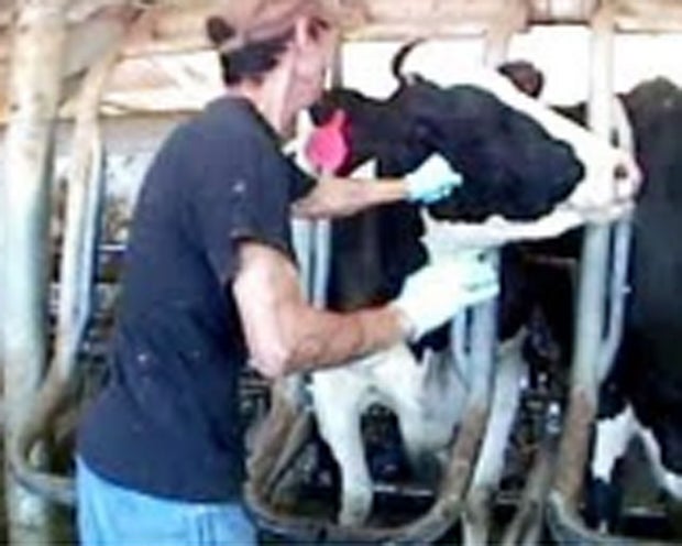 The description of the video by Mercy for Animals says the dairy workers were caught "viciously beating and shocking cows and violently twisting their tails in order to deliberately inflict pain."