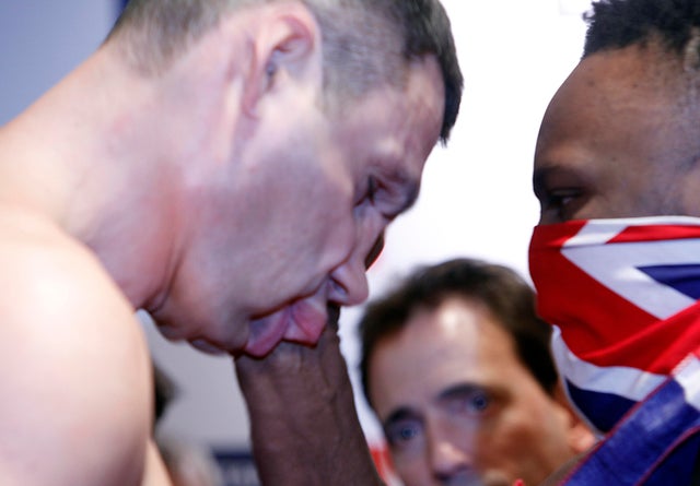 "Right now, I can smell fear in this corner right now. If you can't smell it, I can. You know, right here I smell a bit of fear, to the opposite side, because they know they're about to lose something massive," Chisora said as he pointed at Klitschko earlier this week.