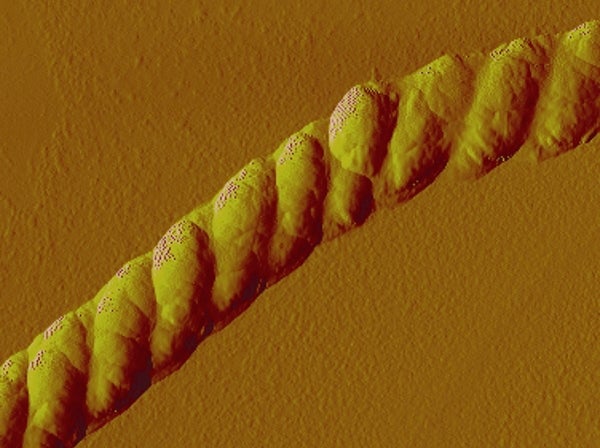 Specifically, the scientists created the conditions for synthetic polymers called polypeptoids to assemble themselves into ever more complicated structures: first into sheets, then into stacks of sheets, which in turn roll up into double helices that resemble a rope measuring only 600 nanometers in diameter (a nanometer is a billionth of a meter).