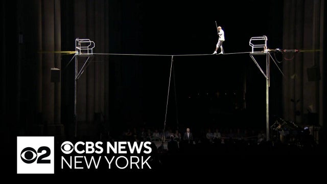 In 1974, high wire artist Philippe Petit bridged the gap between the Twin Towers, and Wednesday, he marked the milestone by returning to the wire in front of a crowd. CBS New York's Naveen Dhaliwal reports.