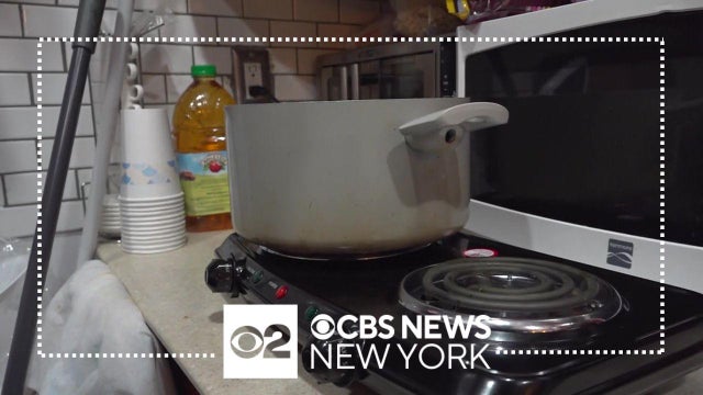 Wanda Jackson showed CBS New York's Nick Caloway around her chilly kitchen. Her landlords provided space heaters and an electric stove to help her get by until repairs can be made.