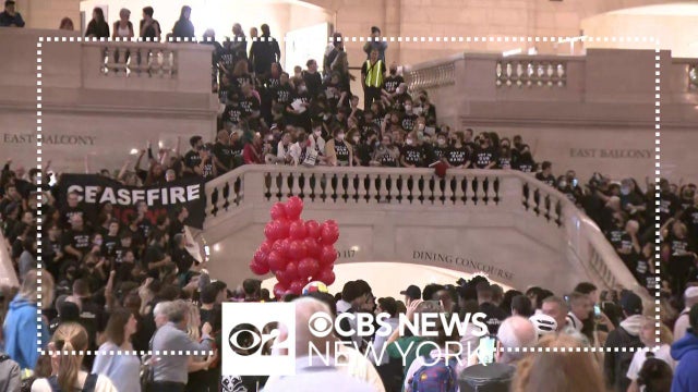 A pro-Palestinian rally was held at Grand Central Terminal on Friday. CBS New York's Christine Sloan reports. Read more: https://cbsloc.al/499oKxD