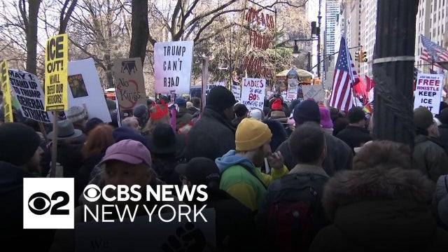 New Yorkers were among the millions of people nationwide taking part in "No Kings" demonstrations, rallying against the war in Iran, immigration tactics and Trump administration actions. CBS News New York's Dave Carlin reports.