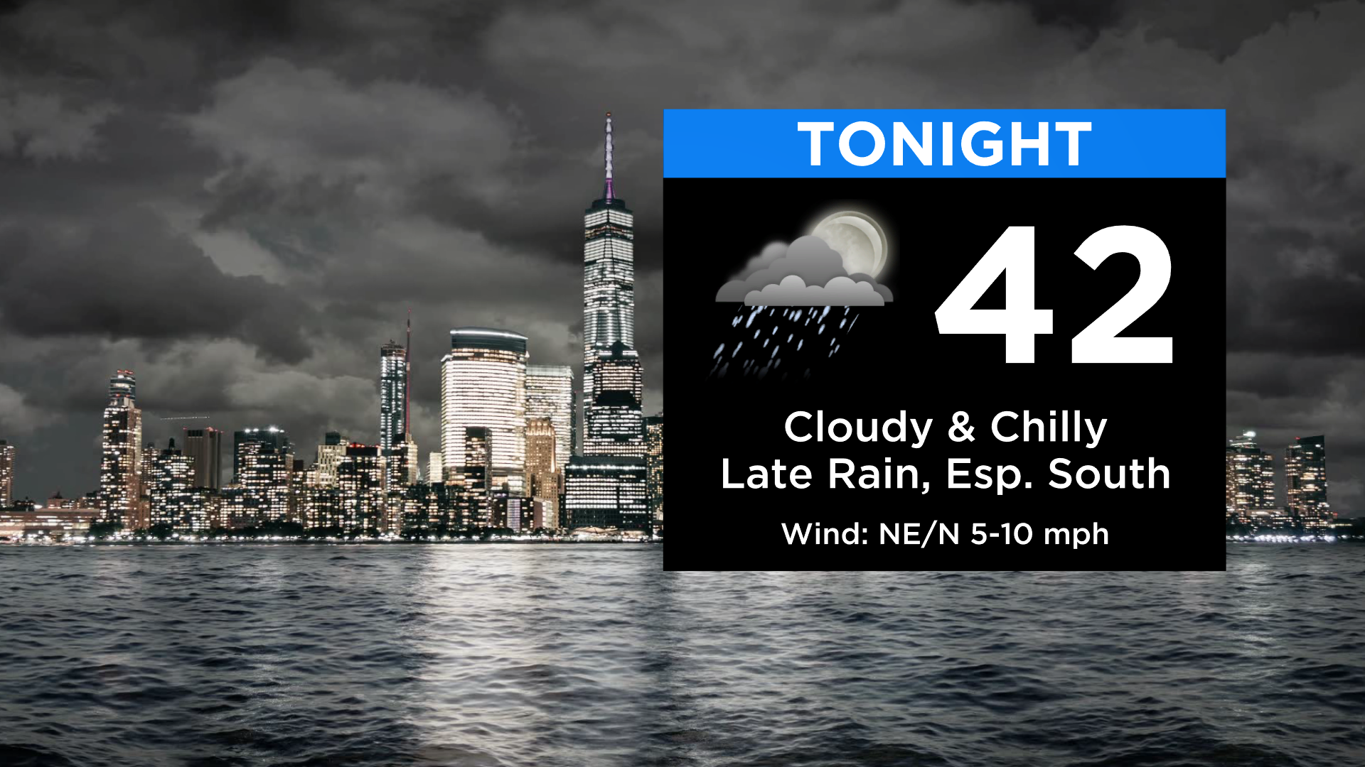 Tonight: Another round of light rain, mainly focused south of the city. Low: 42