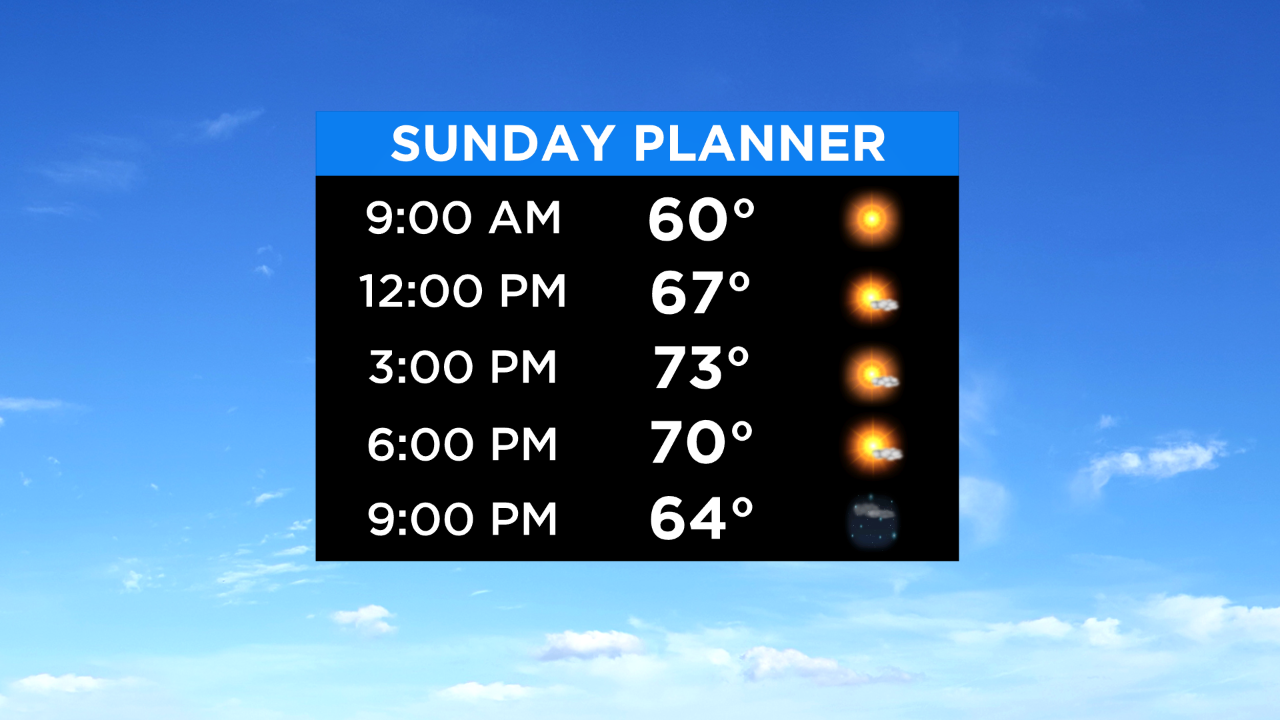 Good Sunday morning everybody! It's going to be another spectacular, sun-filled day across the area with low humidity. We'll once again reach the lower 70s with just a few clouds floatin' by. Get outside and enjoy the day!