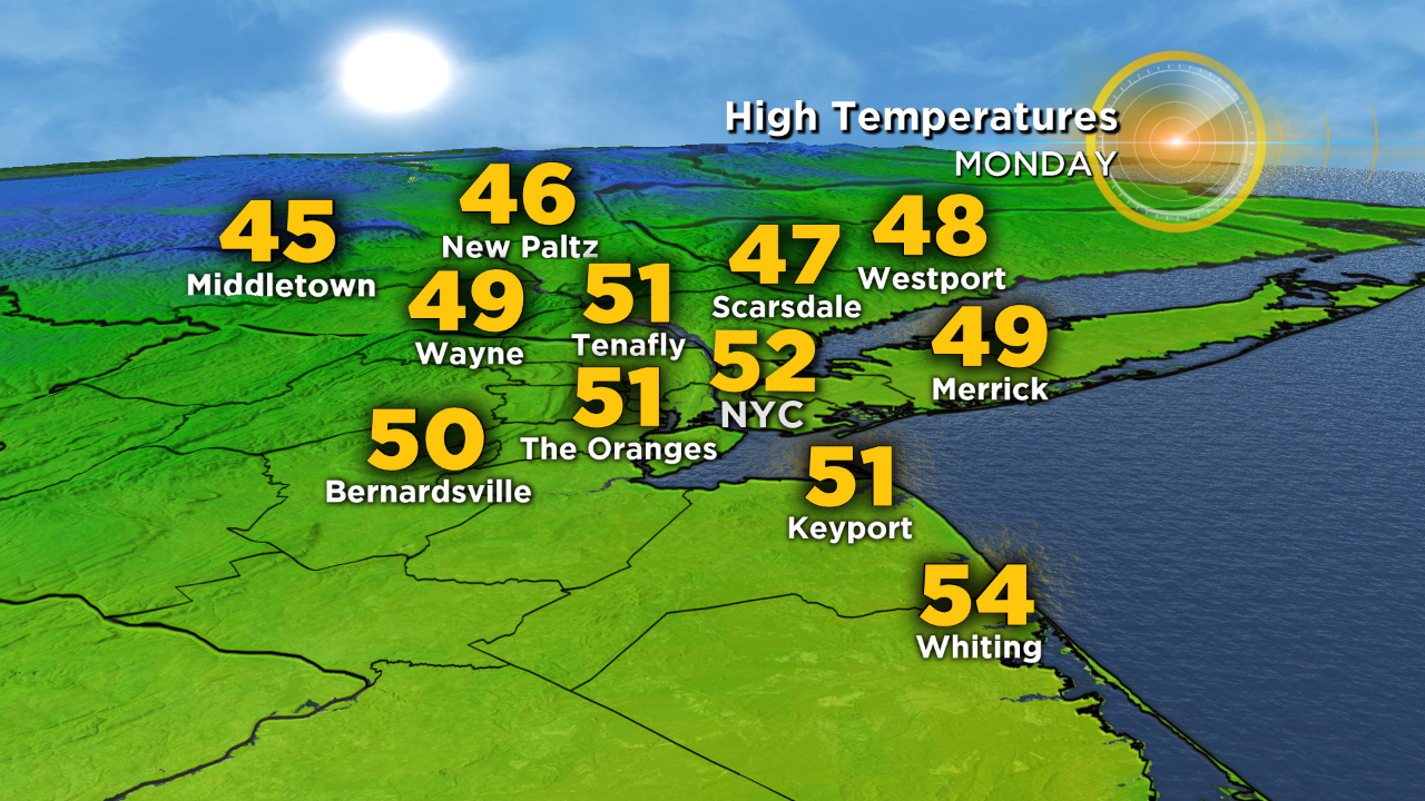 Tomorrow and Wednesday will be cooler with temps in the mid 40s, but temps will be right around where they should be in the mid & upper 40s.