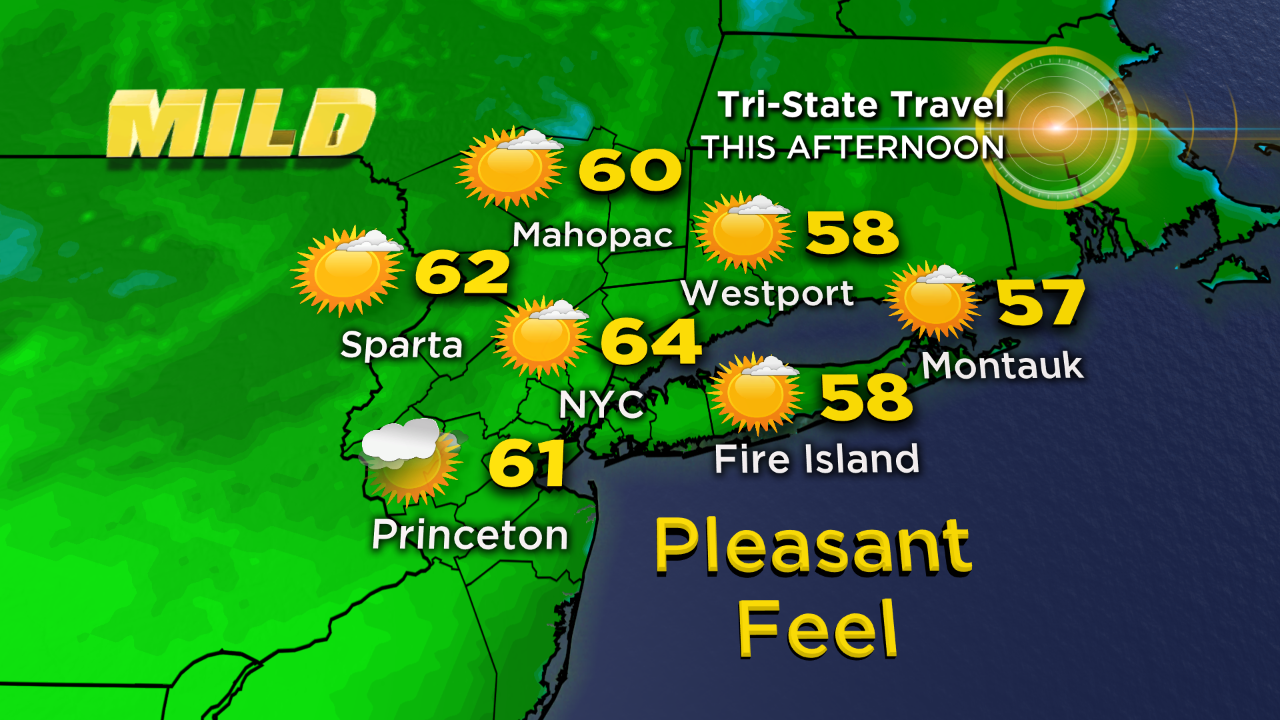 Sunshine wins out this afternoon with partly sunny skies off to our south and west. Highs will be just a couple degrees cooler than yesterday in the low to mid 60s.