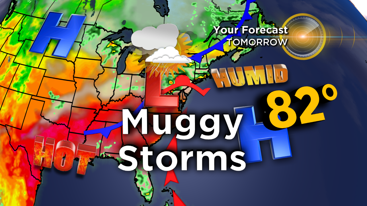 By tomorrow, we're back into the oppressive range. The morning commute stays dry, but showers and storms will develop midday. Expect scattered t-storms in the afternoon and evening, some which may be severe, especially south of the city. Heavy rain, gusty winds, and even a brief isolated tornado are possible. Highs will be in the low 80s.