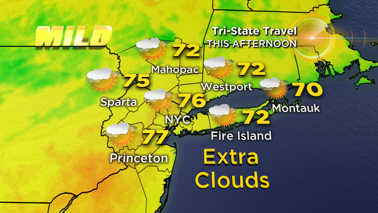 We'll see partly to mostly cloudy skies for the rest of today as clouds continue to stream in from the west. It's still very comfortable with low humidity and highs reaching the mid 70s.