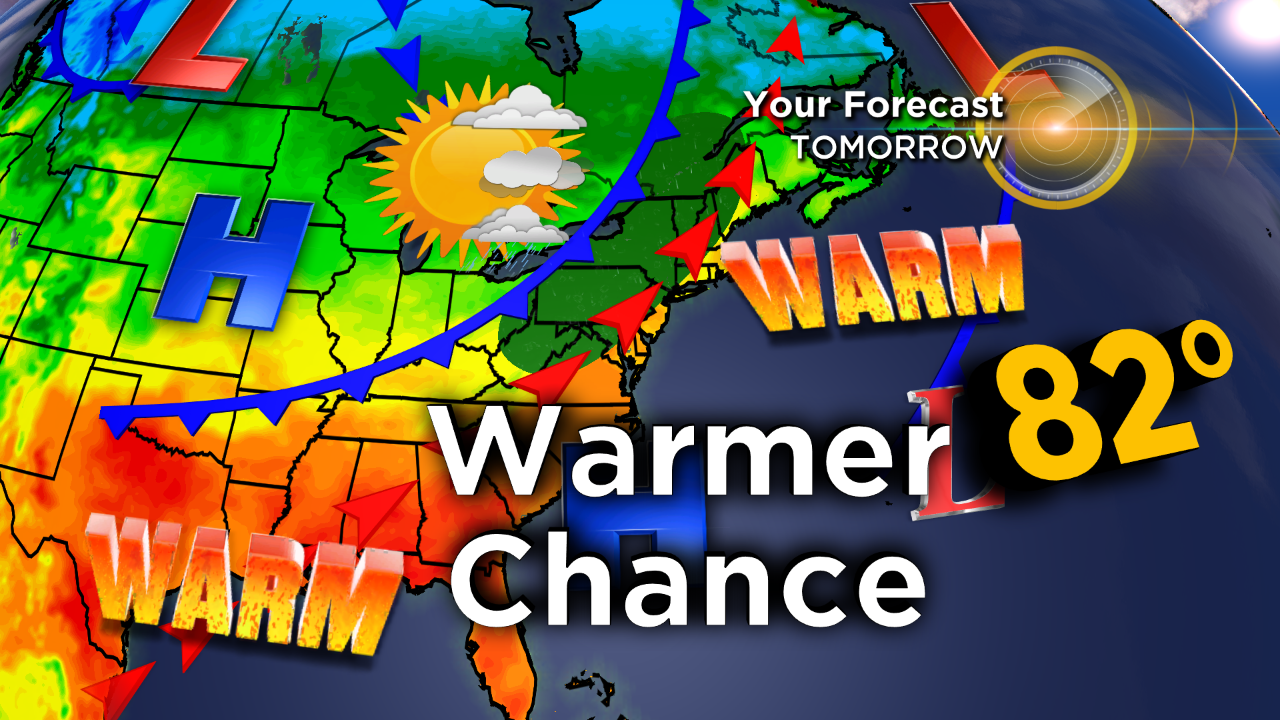 A gorgeous day is on tap with sunshine and blue skies. In addition to that, we'll be spared by any humidity and the winds will be nice and light. As for highs, they'll be a little above seasonal in the upper 70s.