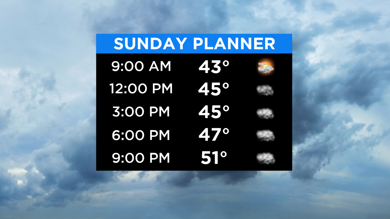 Good Sunday morning everybody! Expect a cloudier and chillier day overall with temps in the 40s for most of the day.