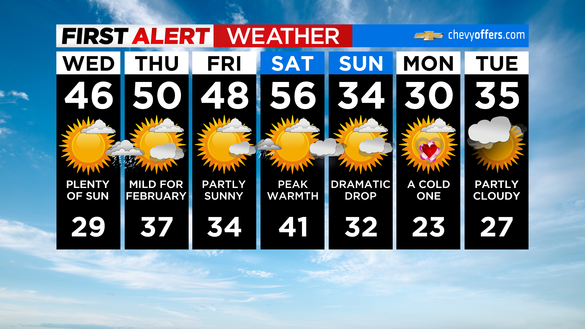 Thursday: Slight chance of showers in the morning, otherwise, clouds give way to some sun. It will be even milder with highs near 50.