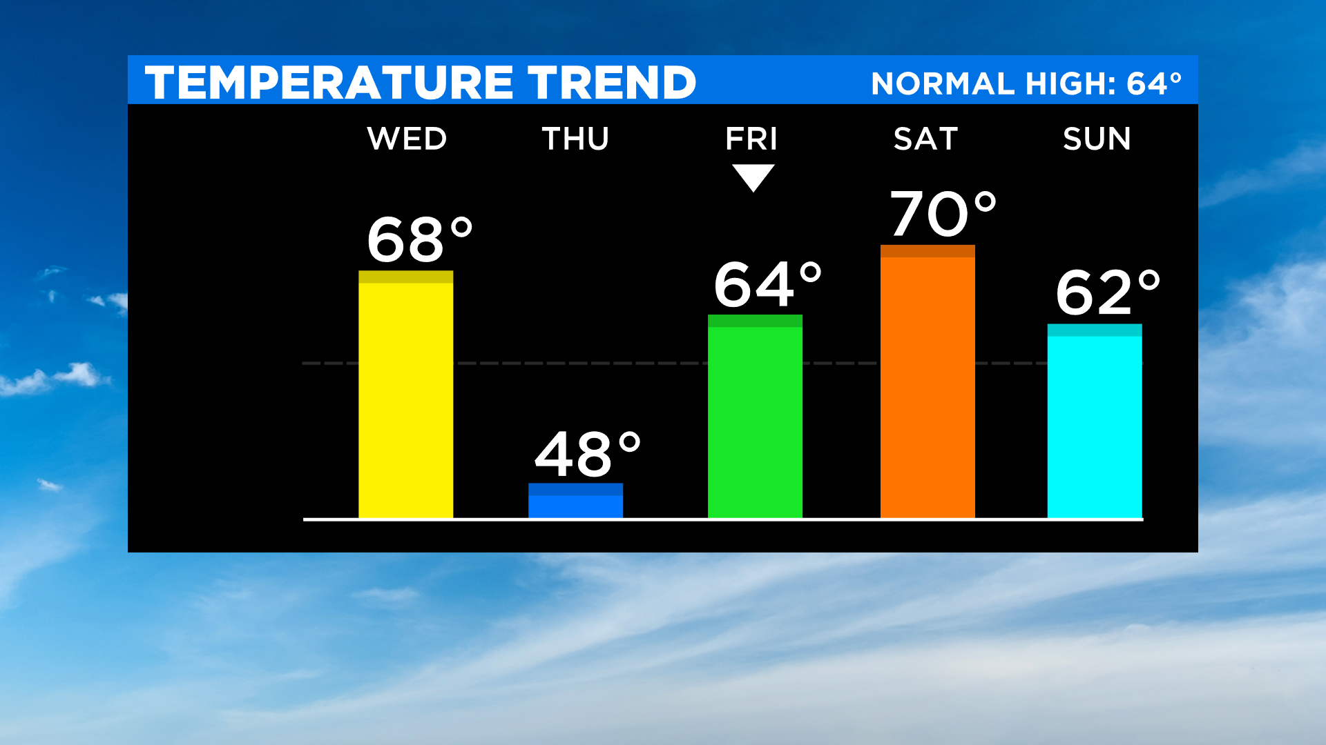 Saturday's the better half of the weekend: sun mixing with PM clouds, but even warmer with highs around 70°.