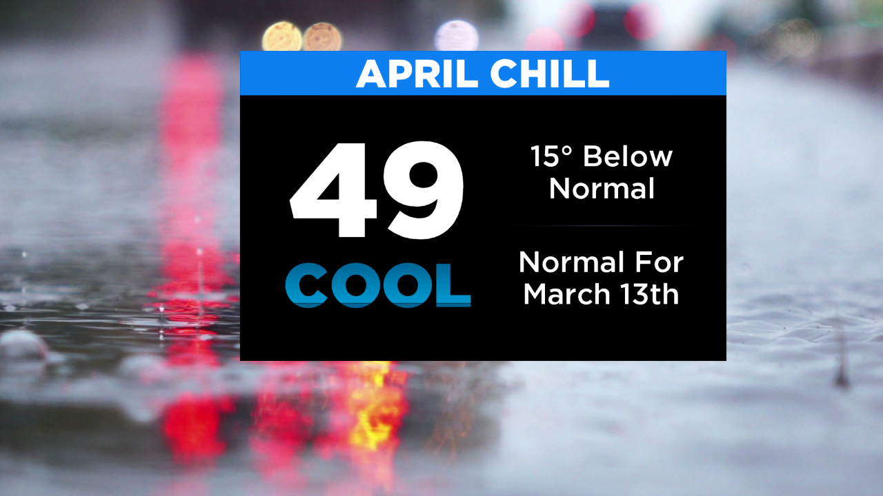 Sunday's looking like another wet one with on and off rain through the day. It will be a bit cooler, too, with highs only around 50.