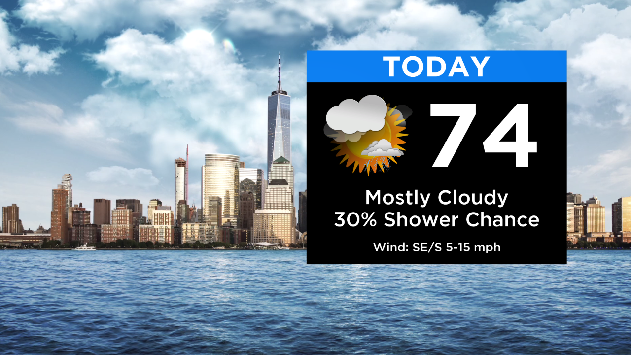 We're expecting a mostly cloudy day with a few passing showers around the area, but mainly from the city westward. High temps will be in the low to mid 70s... slightly humid, too.