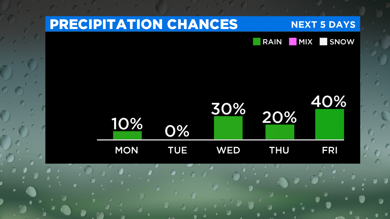 The next chance of rain will be on Wednesday, but mainly late in the day.