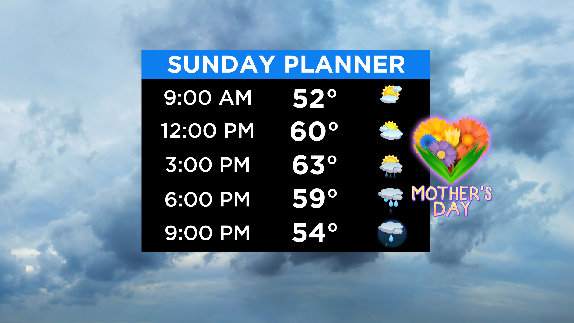 Good Sunday morning, and Happy Mother's Day! Things are starting off clear but crisp on this holiday with temps in the upper 30s and mid 40s. The good news is that the first half of the day looks OK for Mom with some sun and dry conditions.