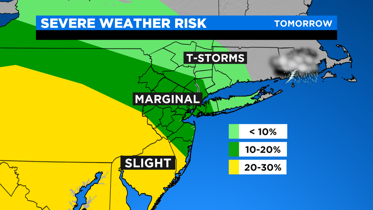 Tomorrow will be one of our warmest days so far (mid 80s) and more humid with the potential for strong storms in the afternoon; the greatest risk seems to be just south and west of the city. The main concerns will be frequent lightning, damaging winds and hail.