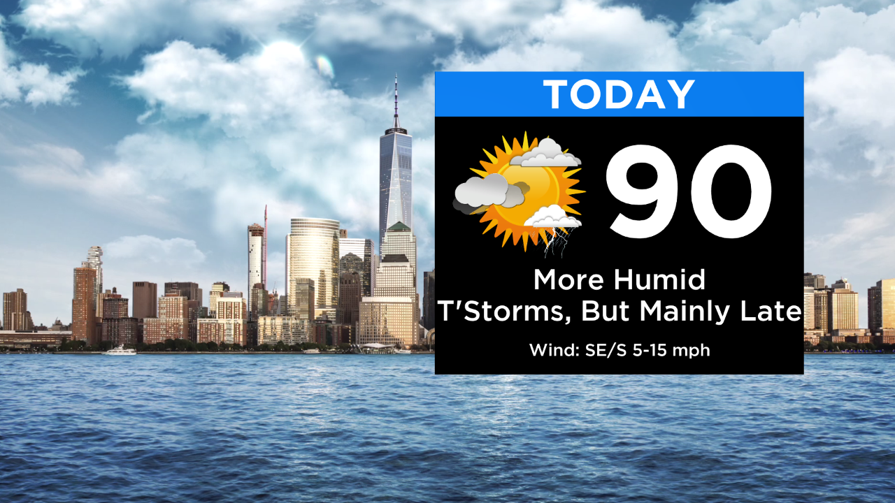 The remainder of the morning should be pretty quiet with clouds giving way to some sun. It's this afternoon that we're expecting iso'd t'storms mainly after about 2/3 PM, but it looks like the bulk of the t'storm activity will hold off until after 6/7 PM. These storms will have the potential to be strong to severe with downpours, gusty winds and hail being the main threats... even an iso'd tornado can't be ruled out (best bet north). Otherwise, expect a mix of sun and clouds, more humid conditions and highs around 90... feeling like the low to mid 90s... feeling like the mid 90s to around 100 S&W of the city (heat advisory). ***We're forecasting 90 degrees for Central Park... would be our 5th consecutive day***