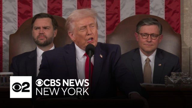 President Trump delivered a defense of his first year back in office in his 2026 State of the Union address, touting his record on immigration, the economy, tariffs and more. CBS News New York Jessica Moore reports.