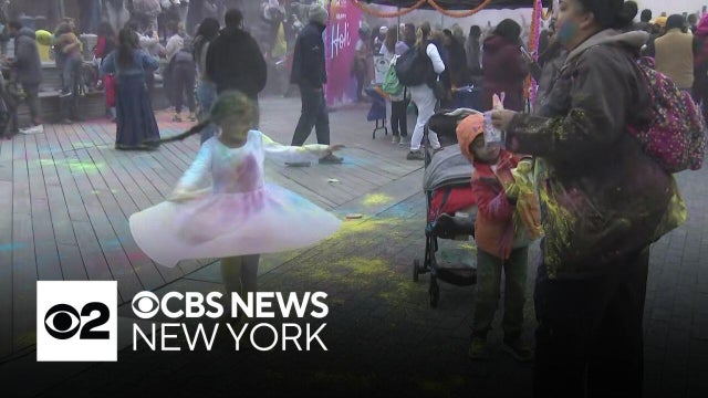 Hundreds of people gathered at the South Street Seaport on Saturday afternoon for a Holi celebration.