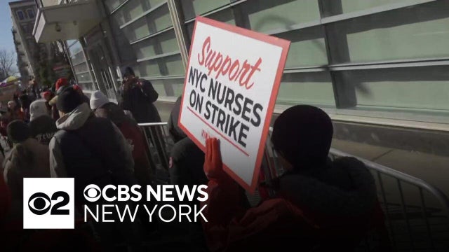 The nurses' union says the agreement includes protections against layoffs, increases salaries by more than 12% over three years, improves health benefits, and further protects nurses against workplace violence. CBS News New York's Doug Williams reports.
