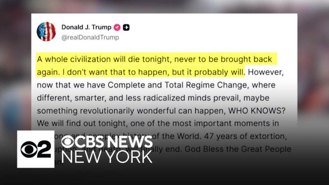 President Trump is escalating pressure on Iran and warns that if the country doesn't make a deal or reopen the Strait of Hormuz by his 8 p.m. deadline, the U.S. could strike power plants, bridges and other infrastructure. CBS News New York's Aziza Shuler reports.