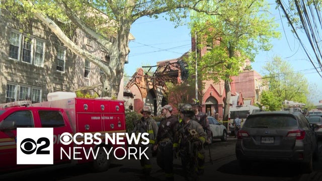 Crews remain at the scene Friday of a fire that tore through a vacant church in Astoria, Queens Thursday night. CBS News New York's Kristie Keleshian reports.