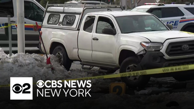 A crossing guard who was hit while shoveling snow on Long Island has been hospitalized in critical condition, sources said. CBS News New York's John Dias reports.