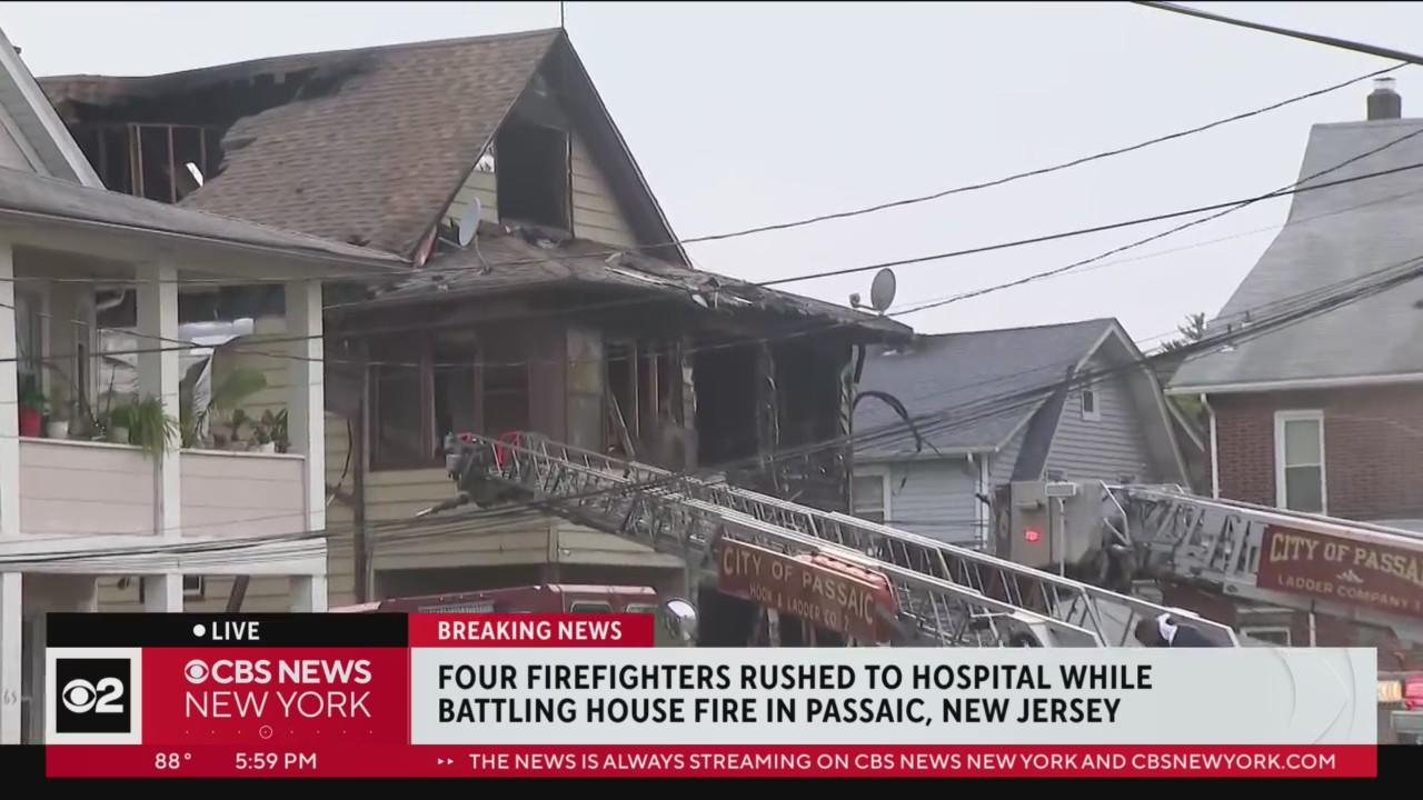 Four firefighters were rushed to a local hospital Wednesday after battling a house fire in Passaic. CBS New York's Alecia Reid reports. Read more: https://cbsloc.al/3NT0buO