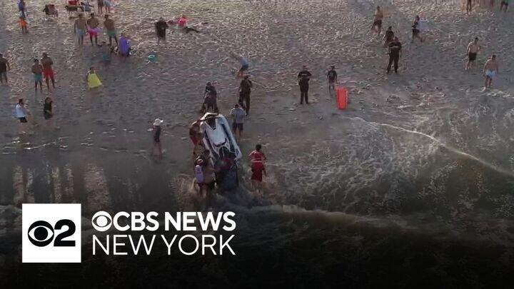 It happened Monday evening in Seaside Heights as swimmers were caught in a rip current. As CBS News New York's Christine Sloan reports, lifeguards were not on duty at the time.