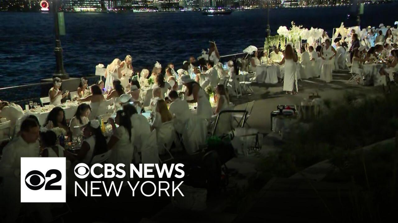 This year's annual Diner en Blanc event was held at Robert Wagner Park in Battery Park City.