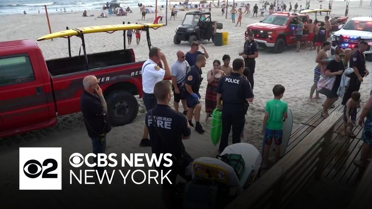 It was all hands on deck in Long Beach when eight swimmers needed to be rescued after lifeguards left their posts for the day. CBS News New York's Alecia Reid reports.