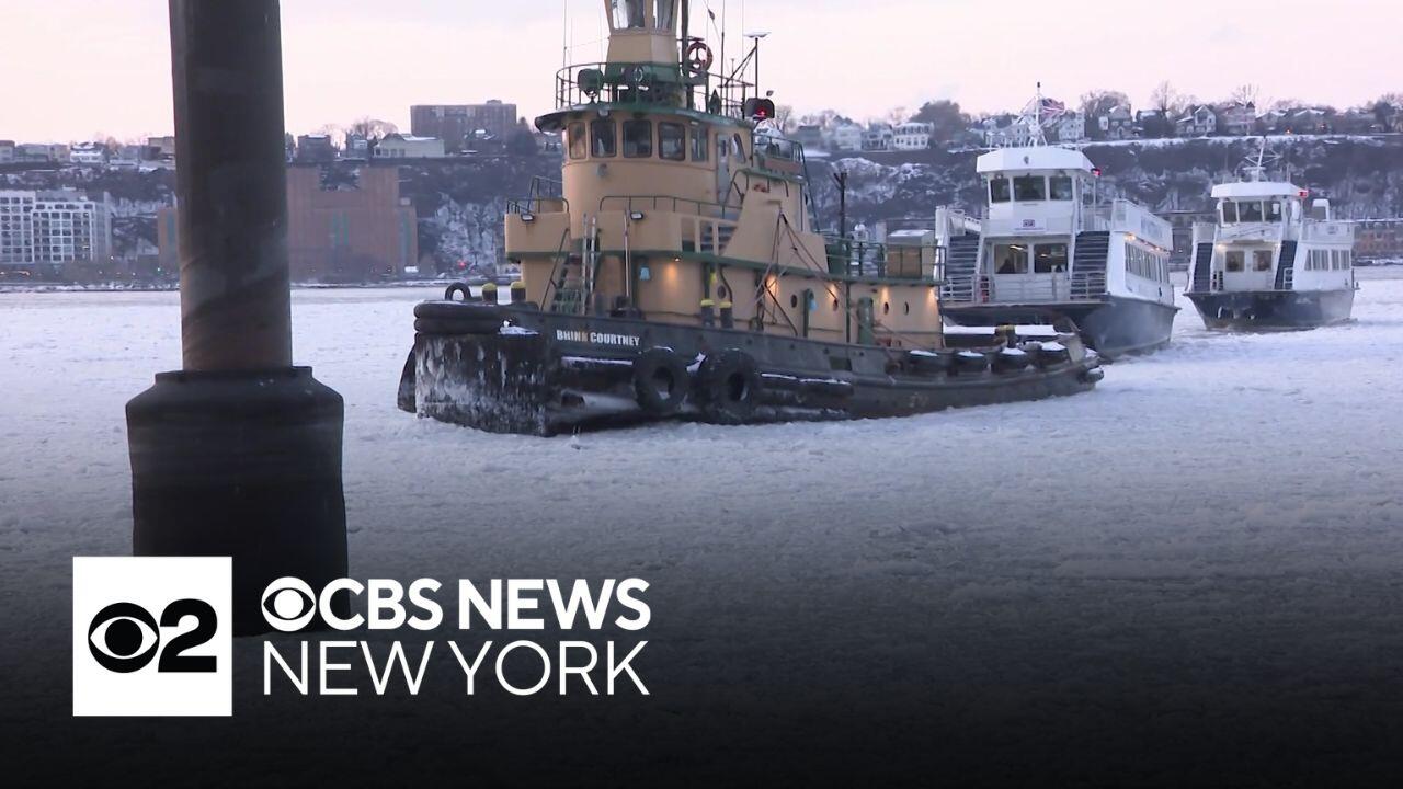 The deep freeze hitting New York City has turned the Hudson River into a floating obstacle course, prompting the cancellation of all NYC Ferry service Wednesday. CBS News New York's Naveen Dhaliwal reports.