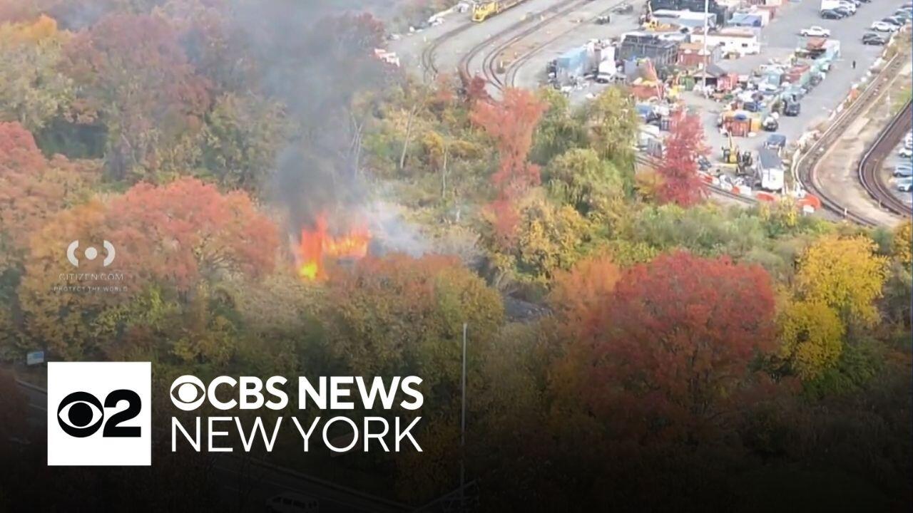 Brush fire near Grand Central Parkway backs up traffic