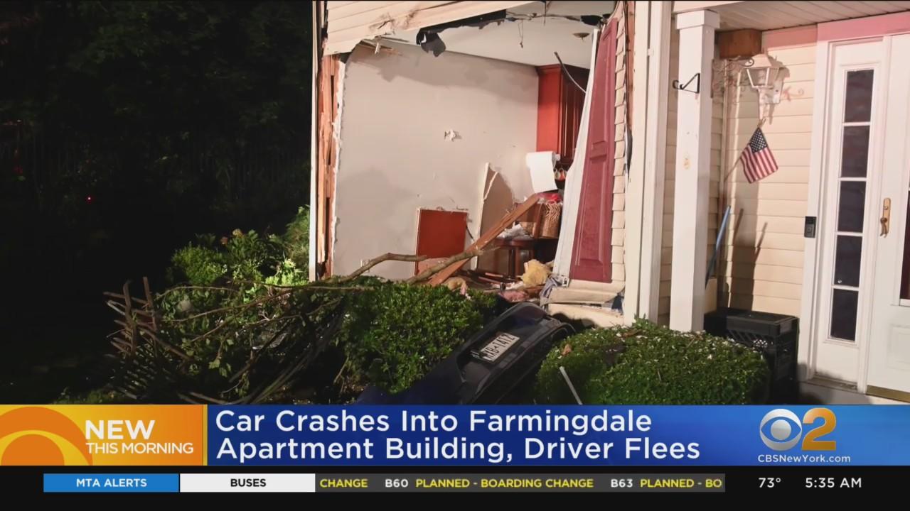 Car slams into LI apartment building