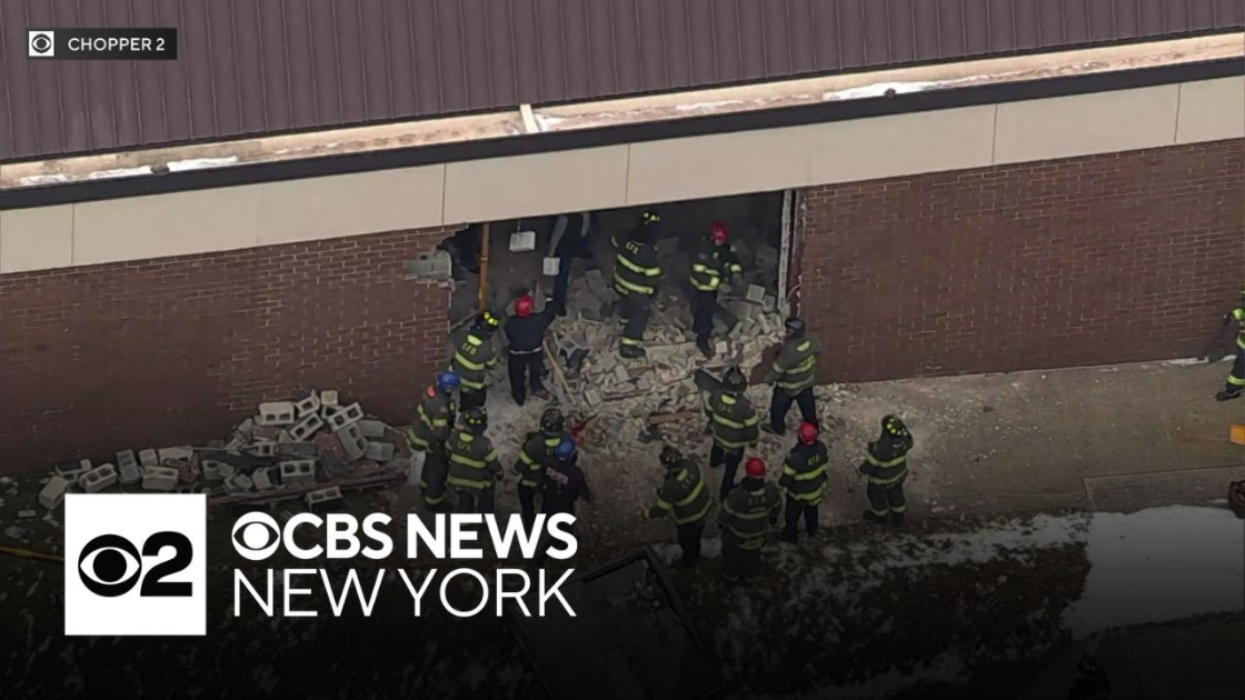 A New Jersey high school student was injured Monday when a driver crashed through the wall of their school, officials said. CBS News New York's Christine Sloan reports.