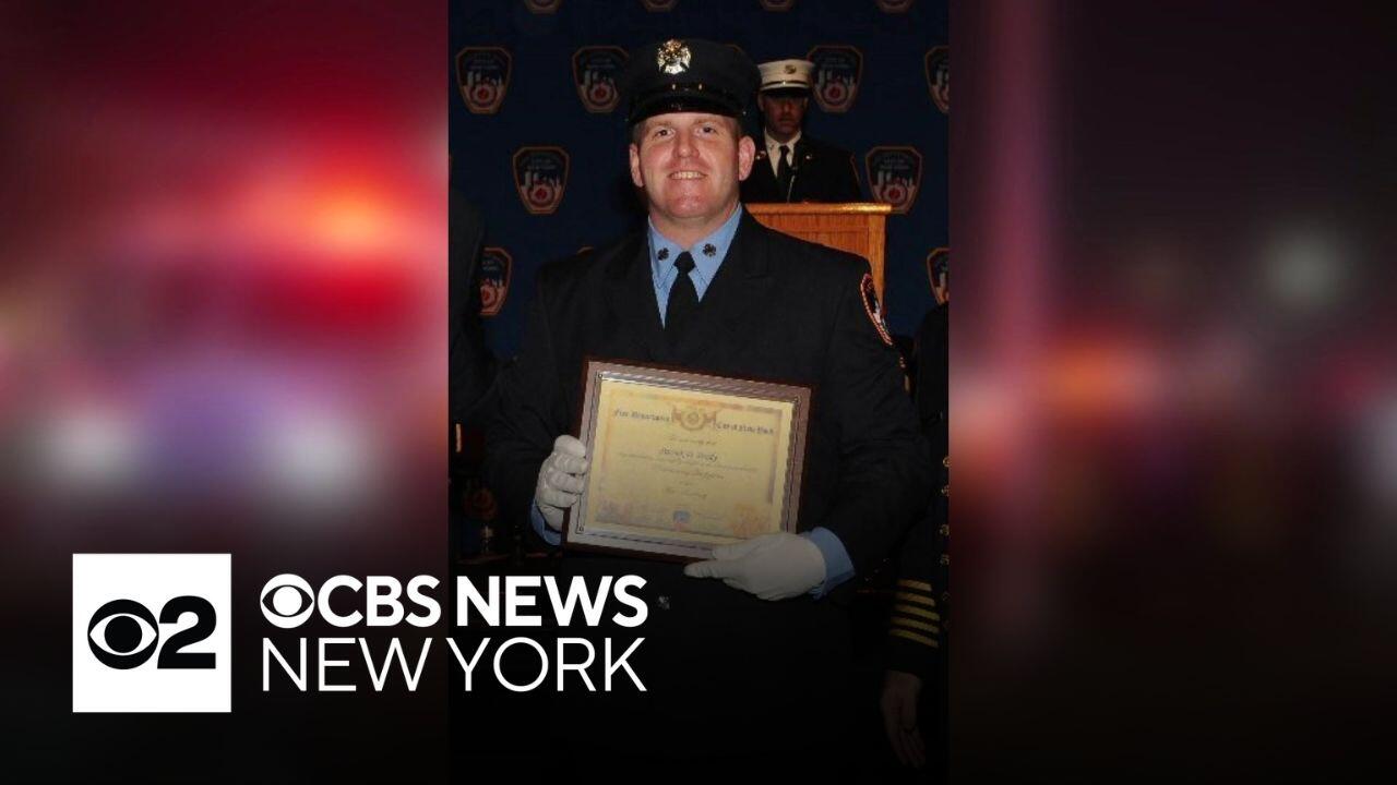 Firefighter Patrick Brady went into cardiac arrest on the roof of the burning building in East Flatbush, FDNY officials said. CBS News New York's Noelle Lilley reports.