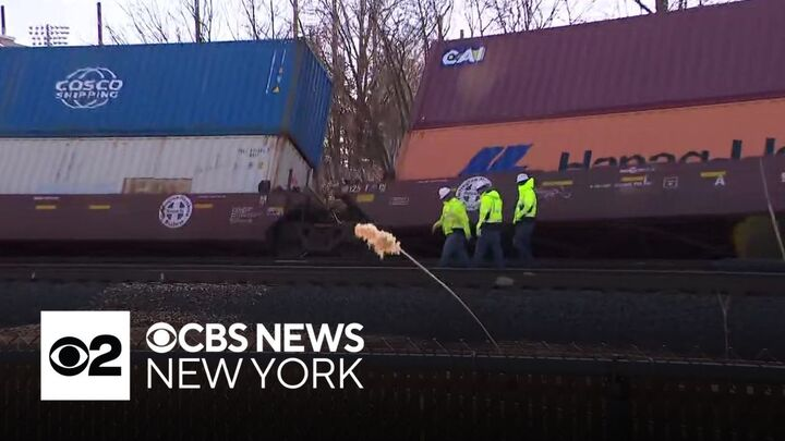 NJ Transit's Raritan Valley Line service was suspended Tuesday morning after a freight train derailment. NJ Transit said the freight train derailed on the Conrail-owned section of the line near Union Station at 6:50 a.m. CBS News New York's Natalie Duddridge reports.