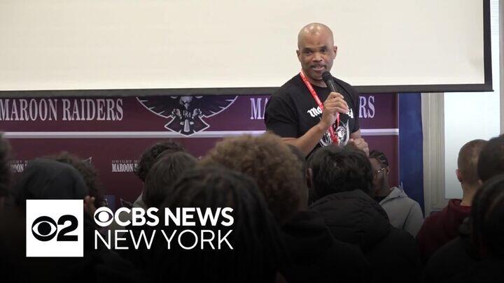 Darryl "DMC" McDaniels, of the famed group Run-D.M.C., went to a high school in New Jersey on Monday to drop some knowledge on life. CBS News New York's Nick Caloway reports.