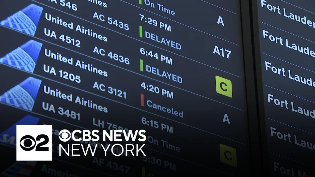 Hundreds of flights were delayed and canceled at Tri-State Area airports Saturday. CBS News New York's Adi Guajardo reports.
