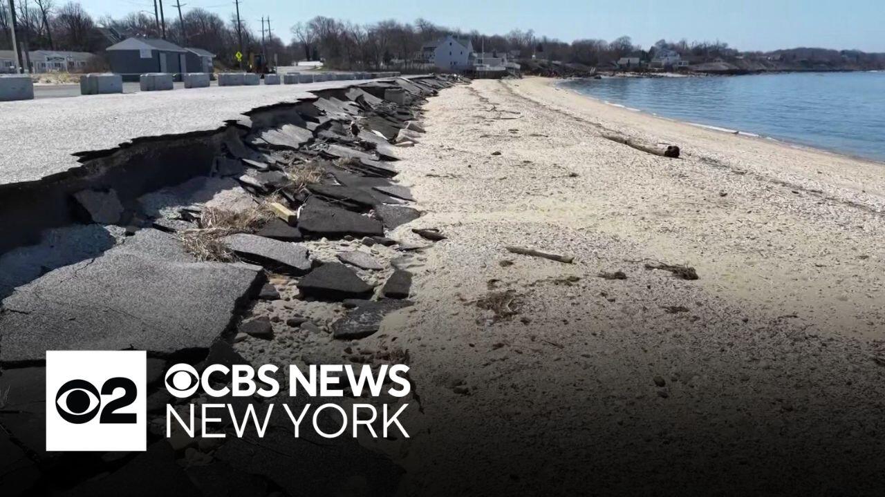 A beloved Long Island beach is losing its battle with erosion. The brutal winter took out much of its sand and parking lot. As CBS News New York's Carolyn Gusoff reports, the North Fork gem will be closed for swimming this summer.