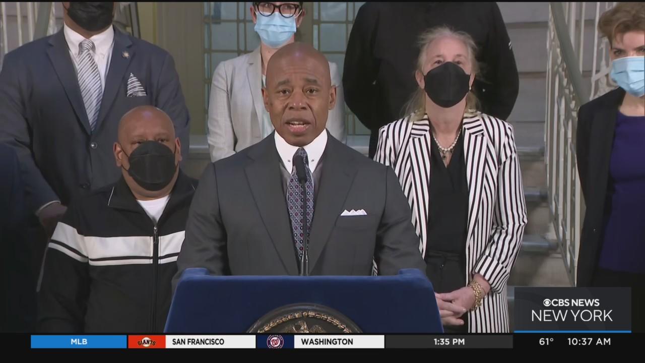 Mayor Adams made a social services-related announcement at City Hall on Sunday.