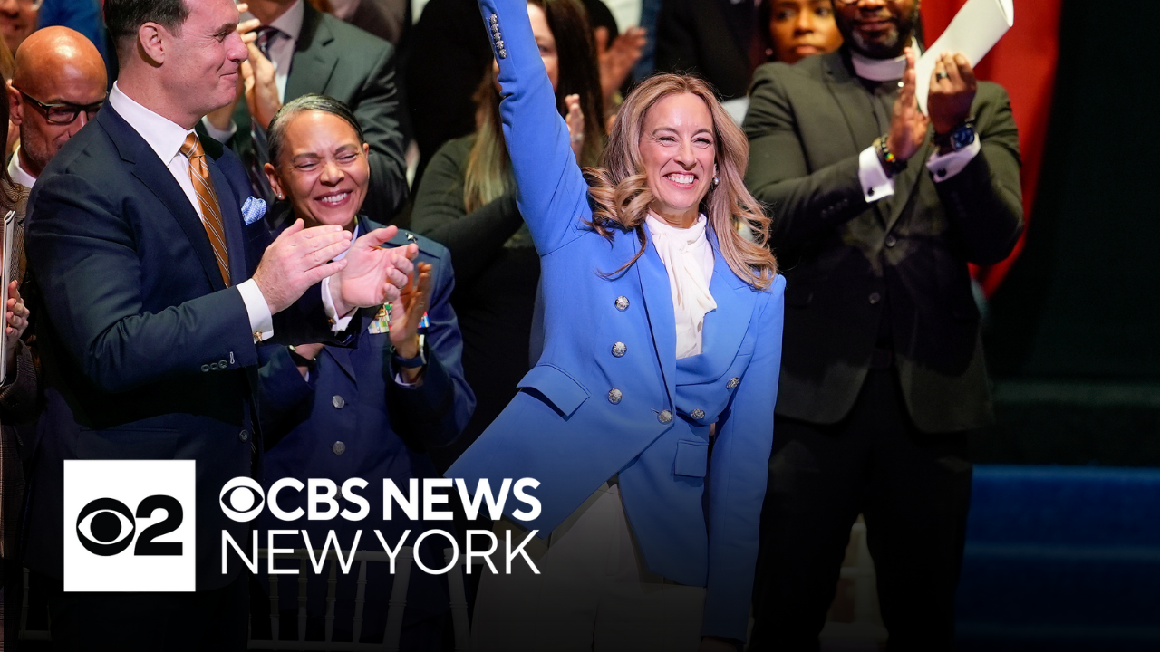 Mikie Sherrill was sworn in as New Jersey governor at a ceremony on Tuesday in Newark. CBS News New York's Christine Sloan reports.