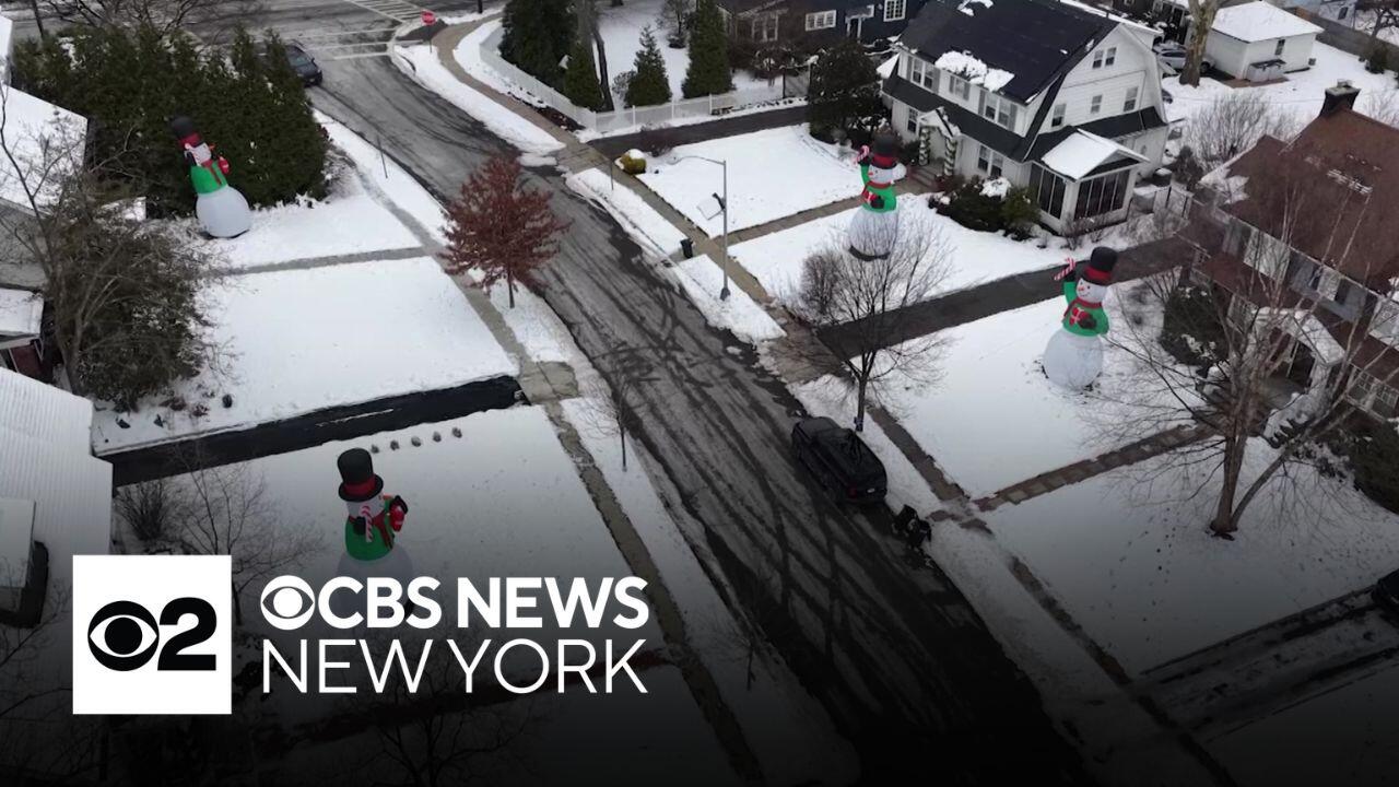 A street in Montclair, New Jersey, is all decked out for the holidays with giant snowman decorations in nearly every yard. As CBS News New York's Nick Caloway reports, it's more than holiday cheer, it's all for a good cause.