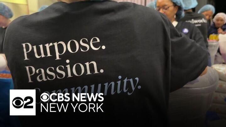 Students, veterans, neighbors, and strangers turned into teammates on Thursday to help pack meals for those in need. CBS News New York's Steve Overmyer reports.